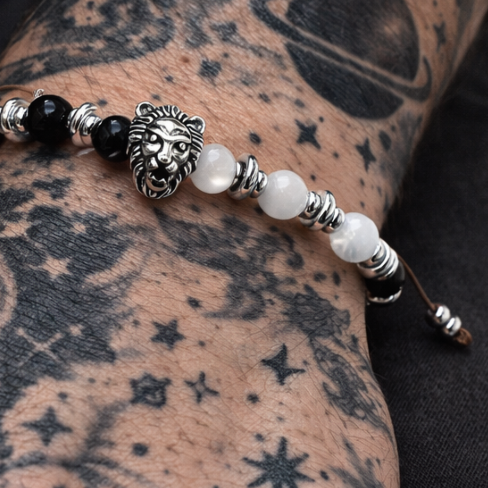 Bratara barbati cu turmalina neagra si selenit - protectie energetica