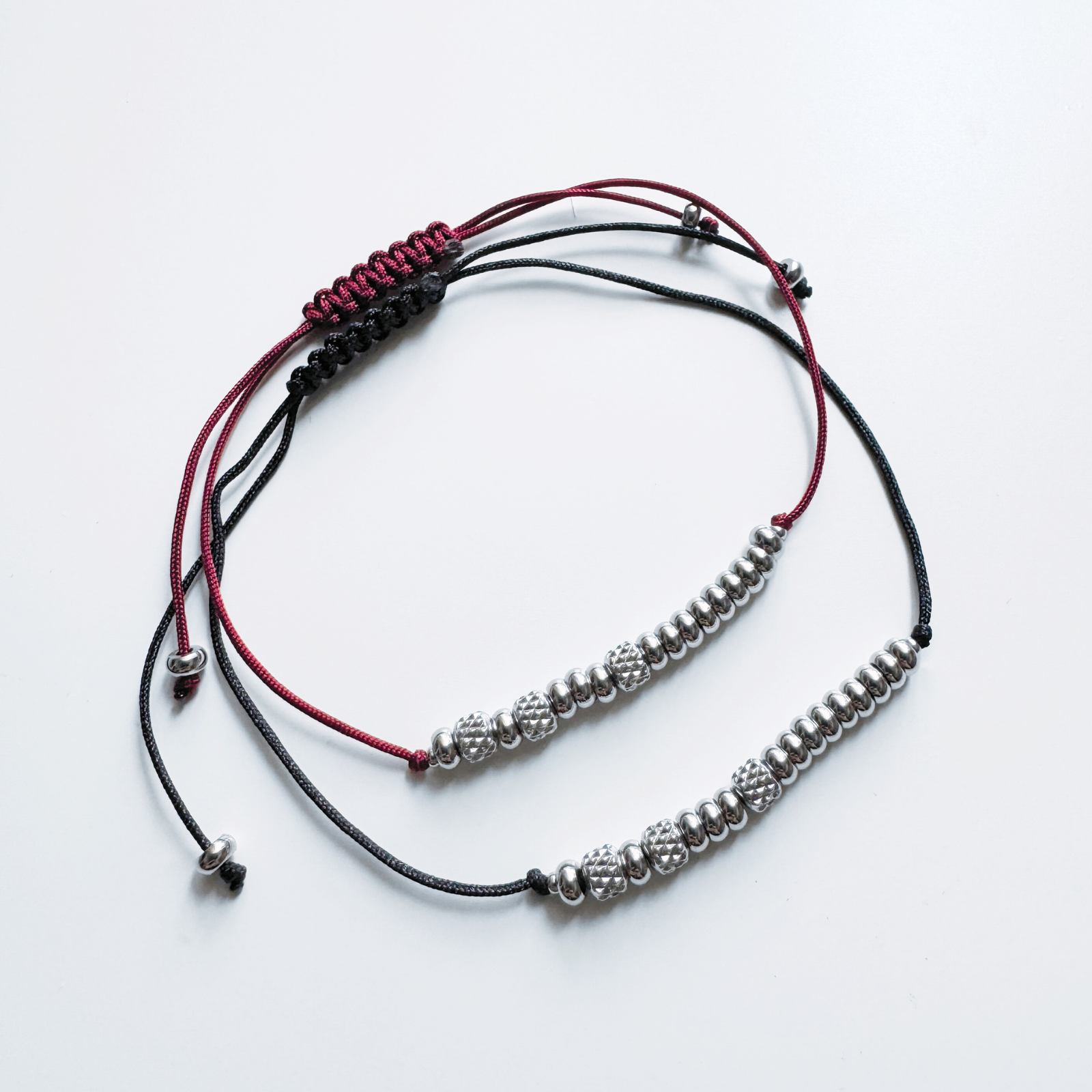 - Culori : 1 x bratara cu snur grena , 1 x bratara cu snur negru