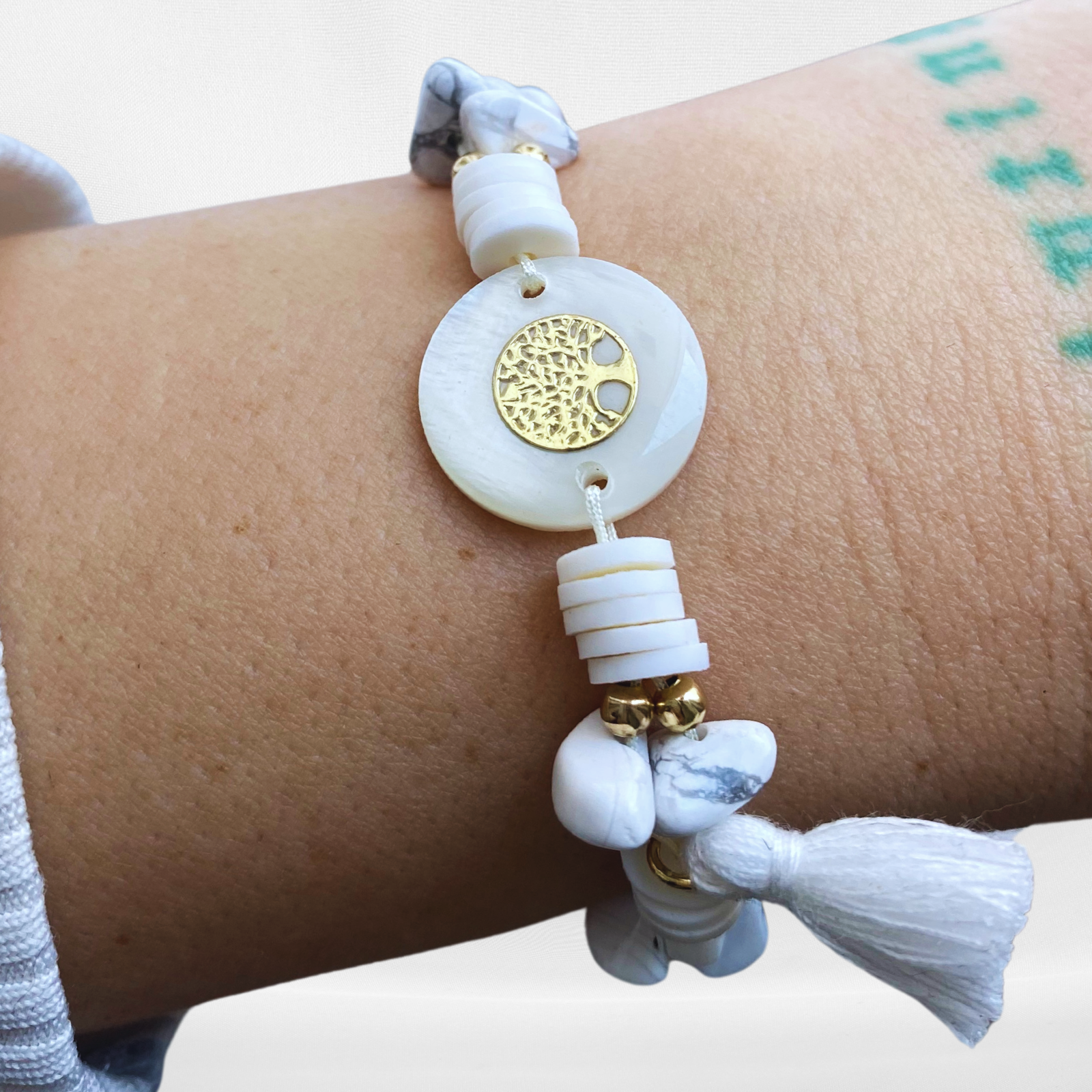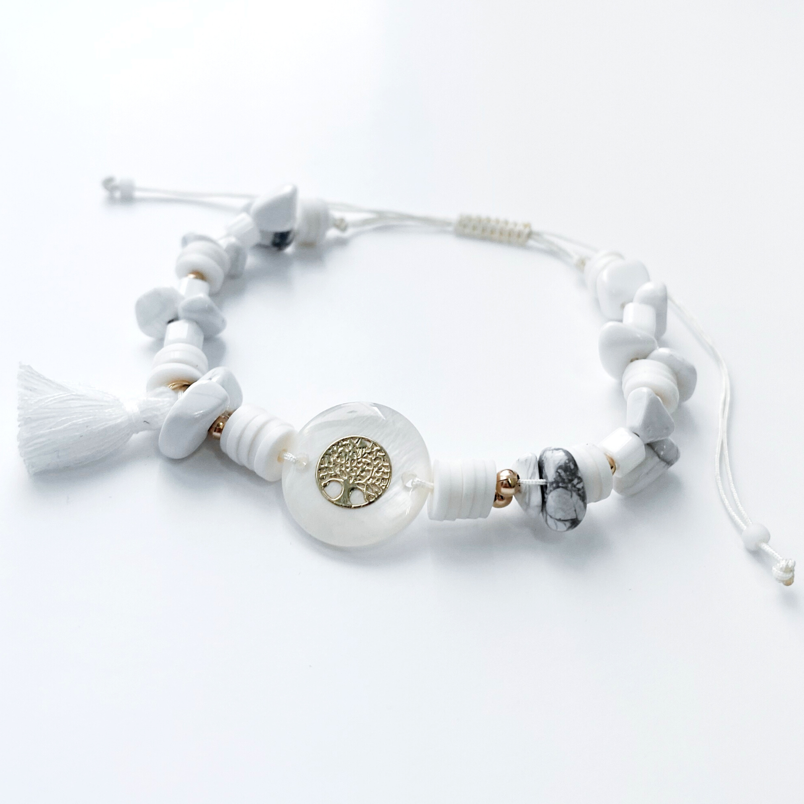 Bratara din cristale naturale de howlit alb Copacul Vietii din sidef