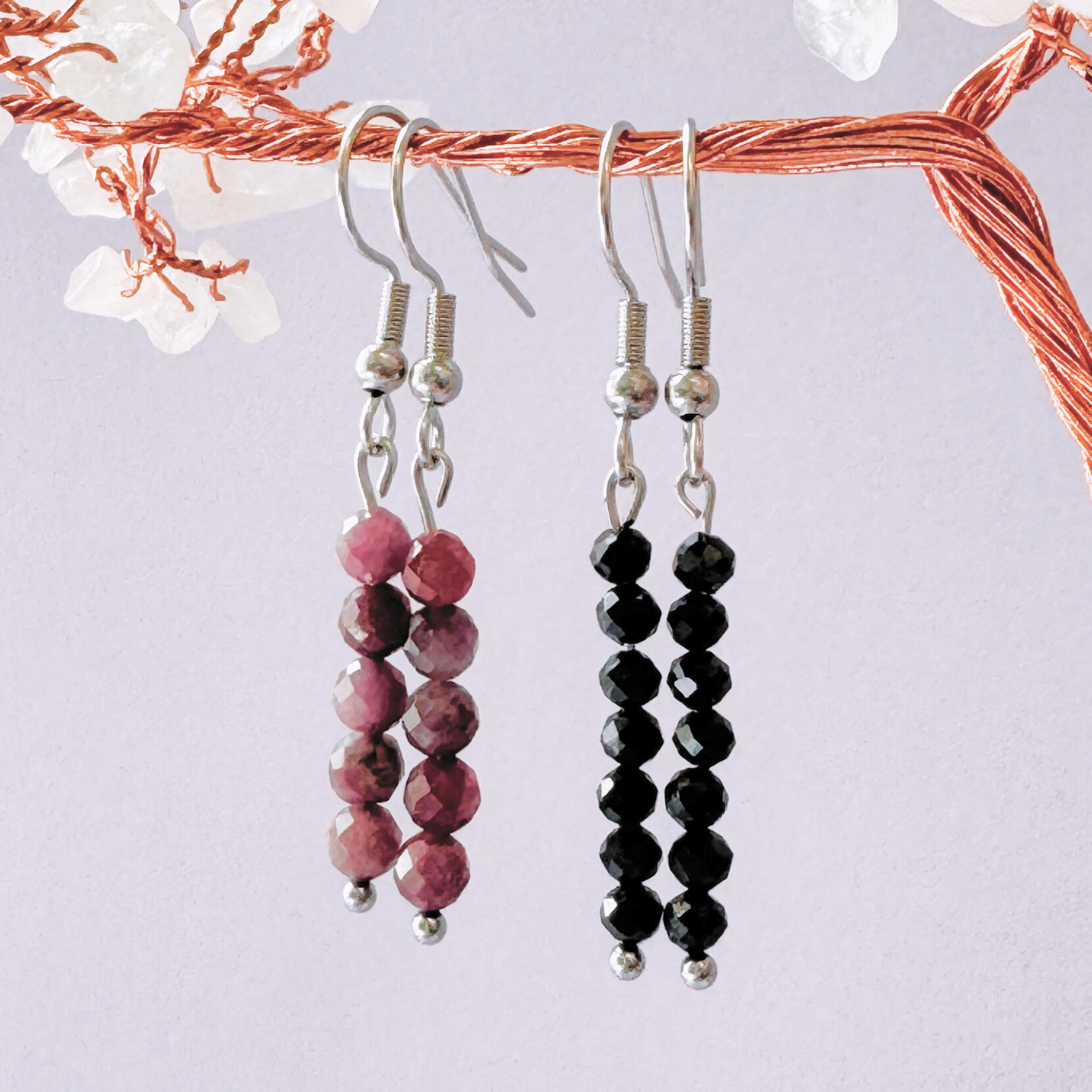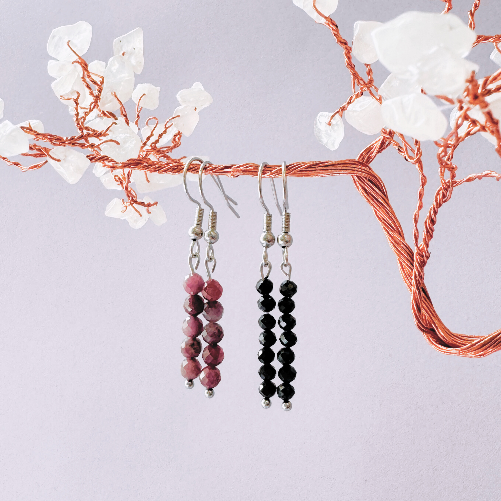 Set doua perechi cercei argintii turmalina neagra si turmalina roz