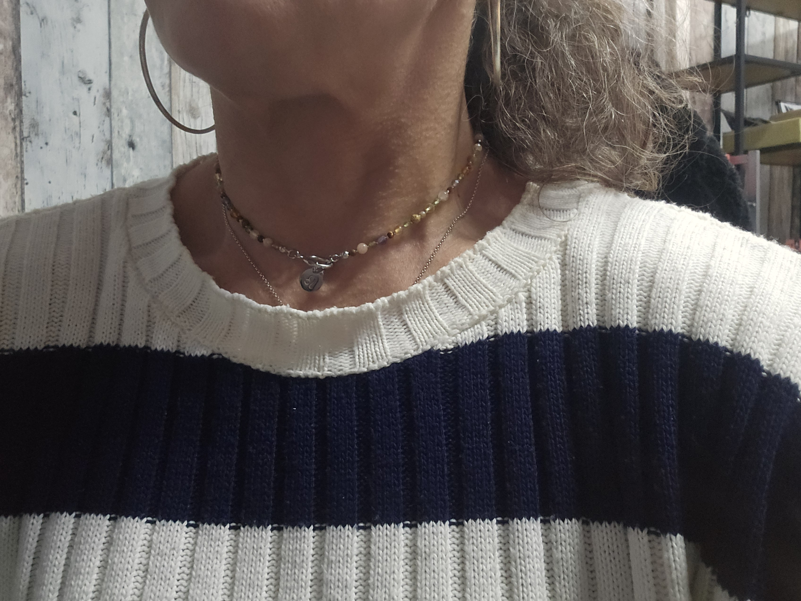 Realizat cu cristale naturale fatetate si nefatetate de 3, 4 / 4.5 mm : peridot, ochi de tigru, citrin, ametist, piatra soarelui, jasp