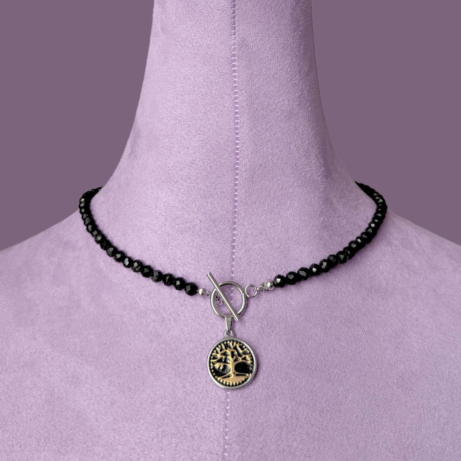 Colier la baza gatului din turmalina neagra cu pandantiv copacul vietii si inchizatoare toggle