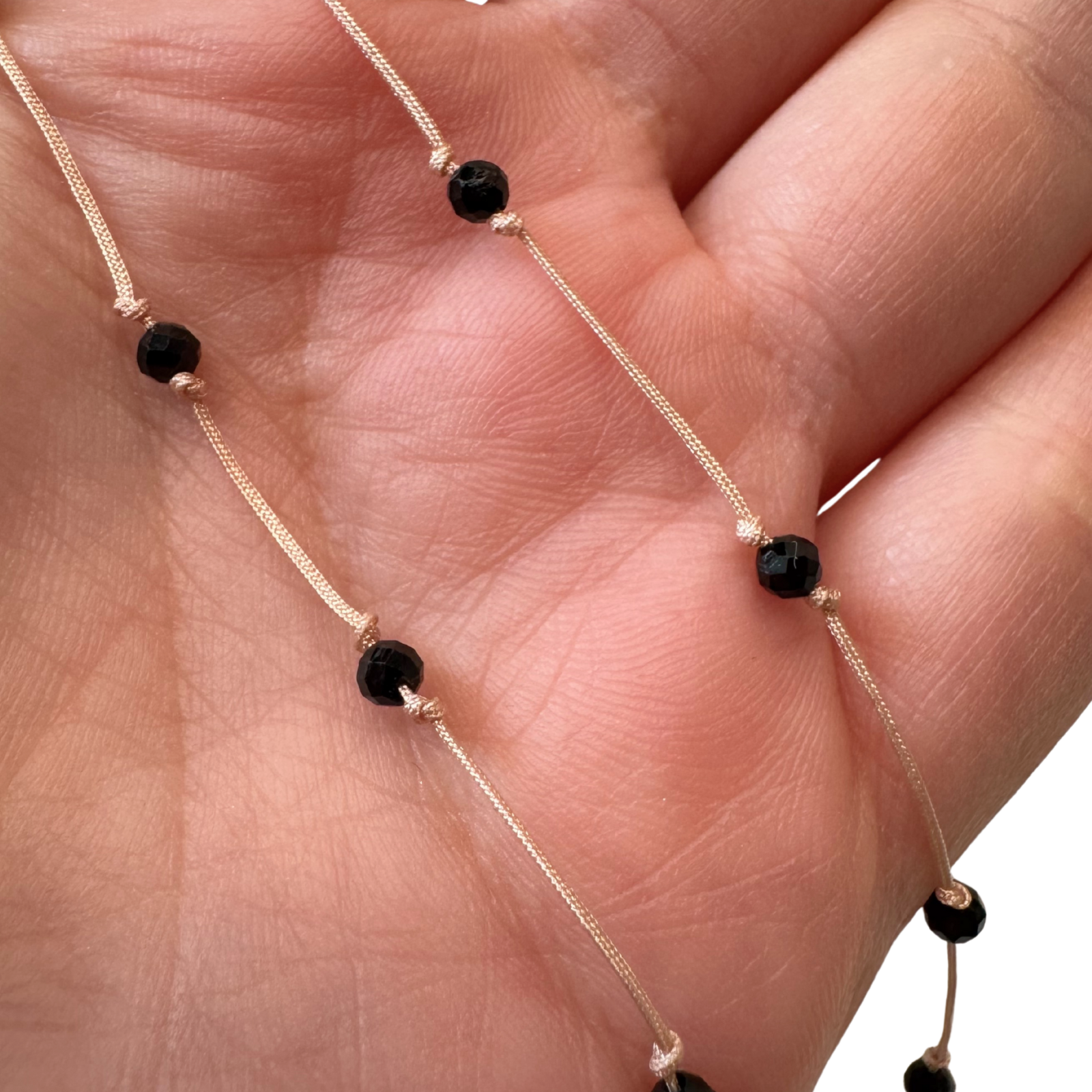 • Realizat cu cristale naturale fatetate din turmalina neagra, dimensiune 3 / 4.5 mm