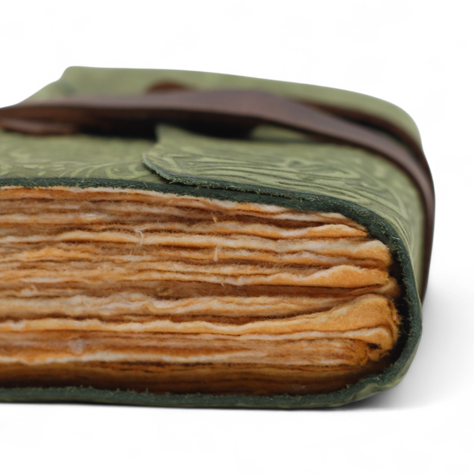 Agenda / Jurnal din piele naturala cu pagini tip pergament - Green Flowers