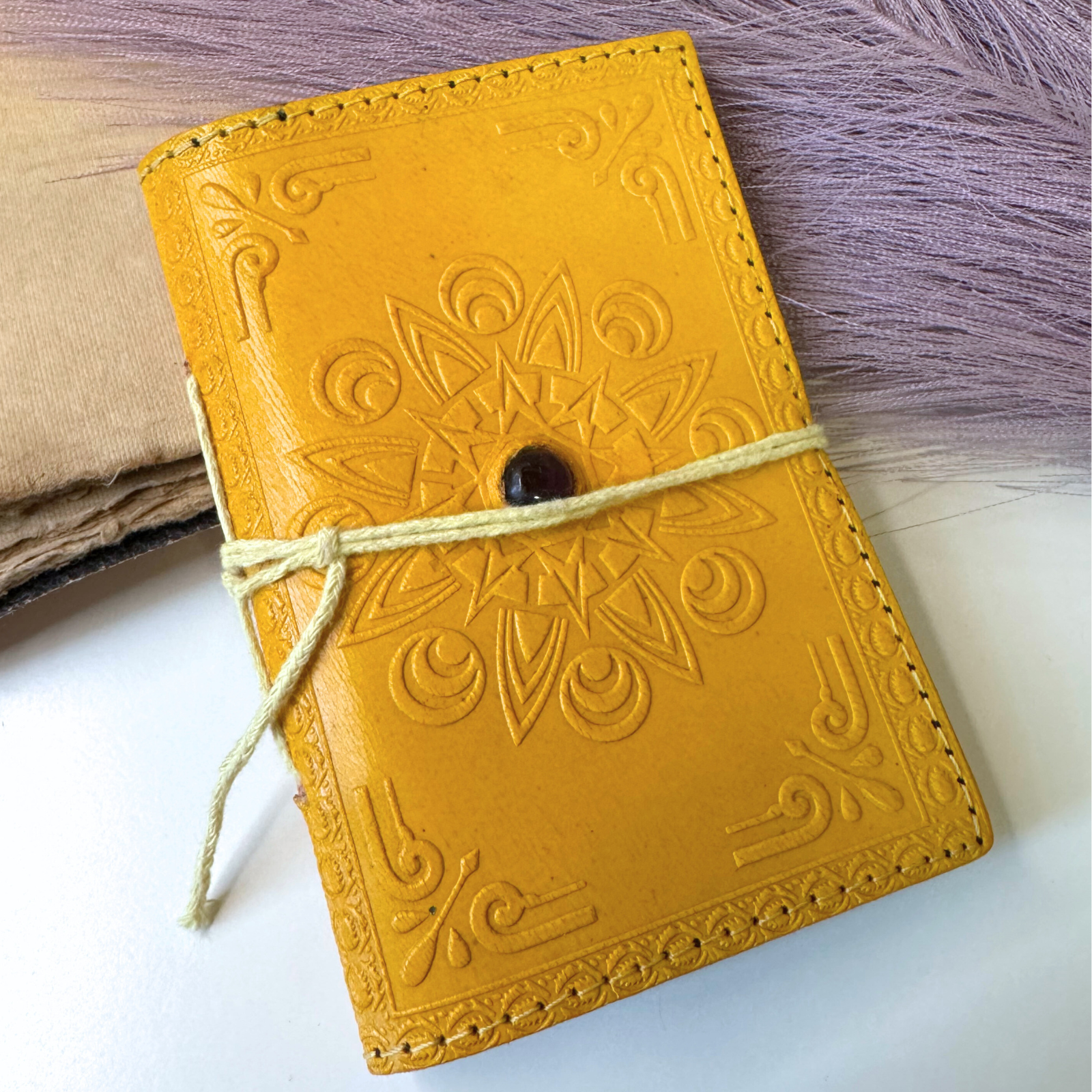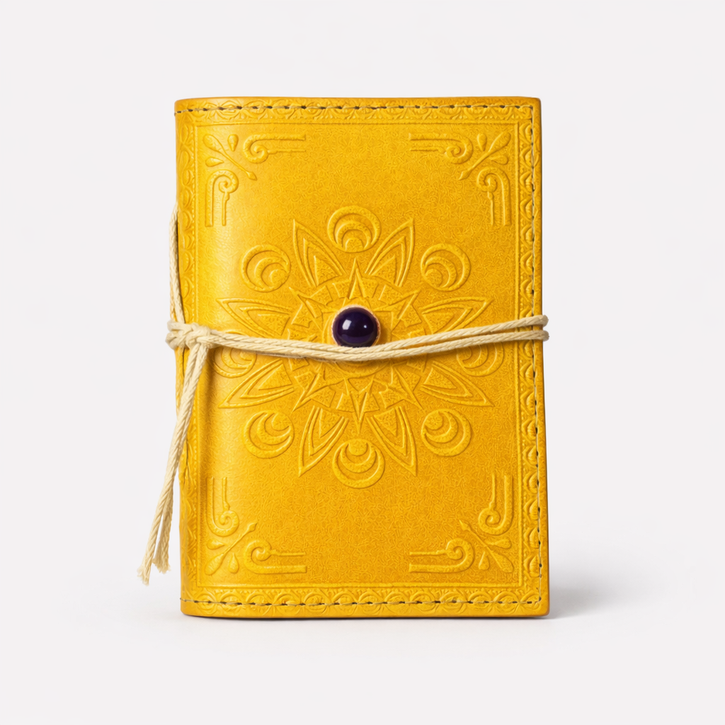 Agenda mica din piele naturala decorata cu piatra - Galben – lucrata manual, cu grija, pentru momentele care merita pastrate ♥