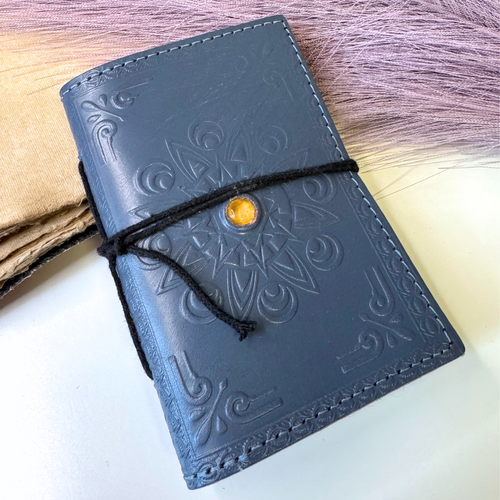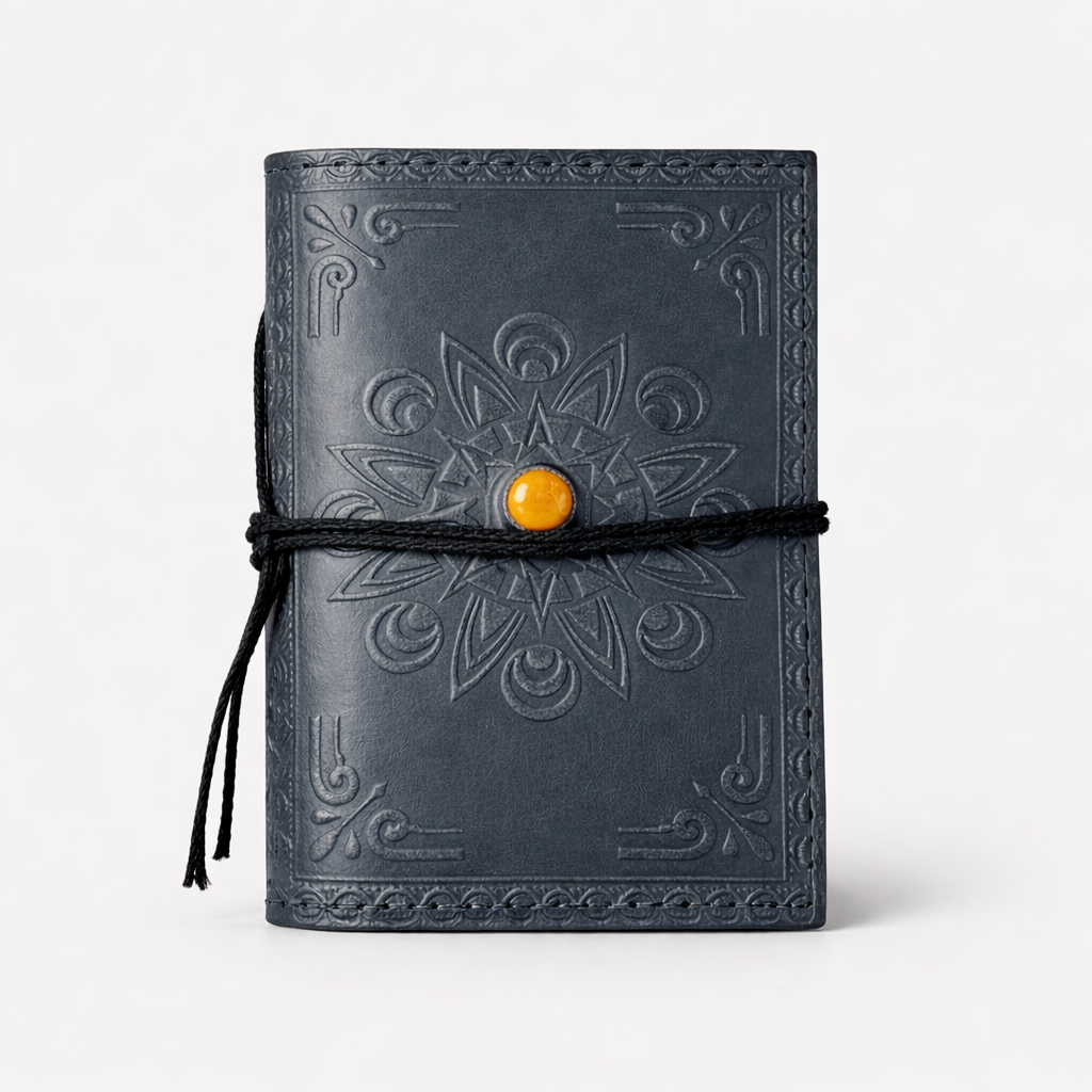 Agenda mica din piele naturala decorata cu piatra - Gri – lucrata manual, cu grija, pentru momentele care merita pastrate ♥