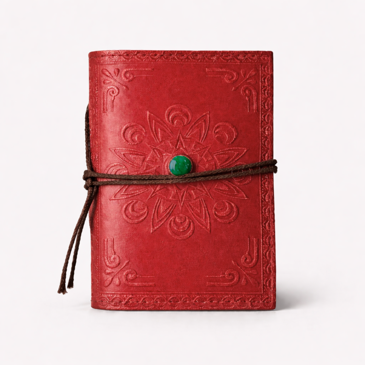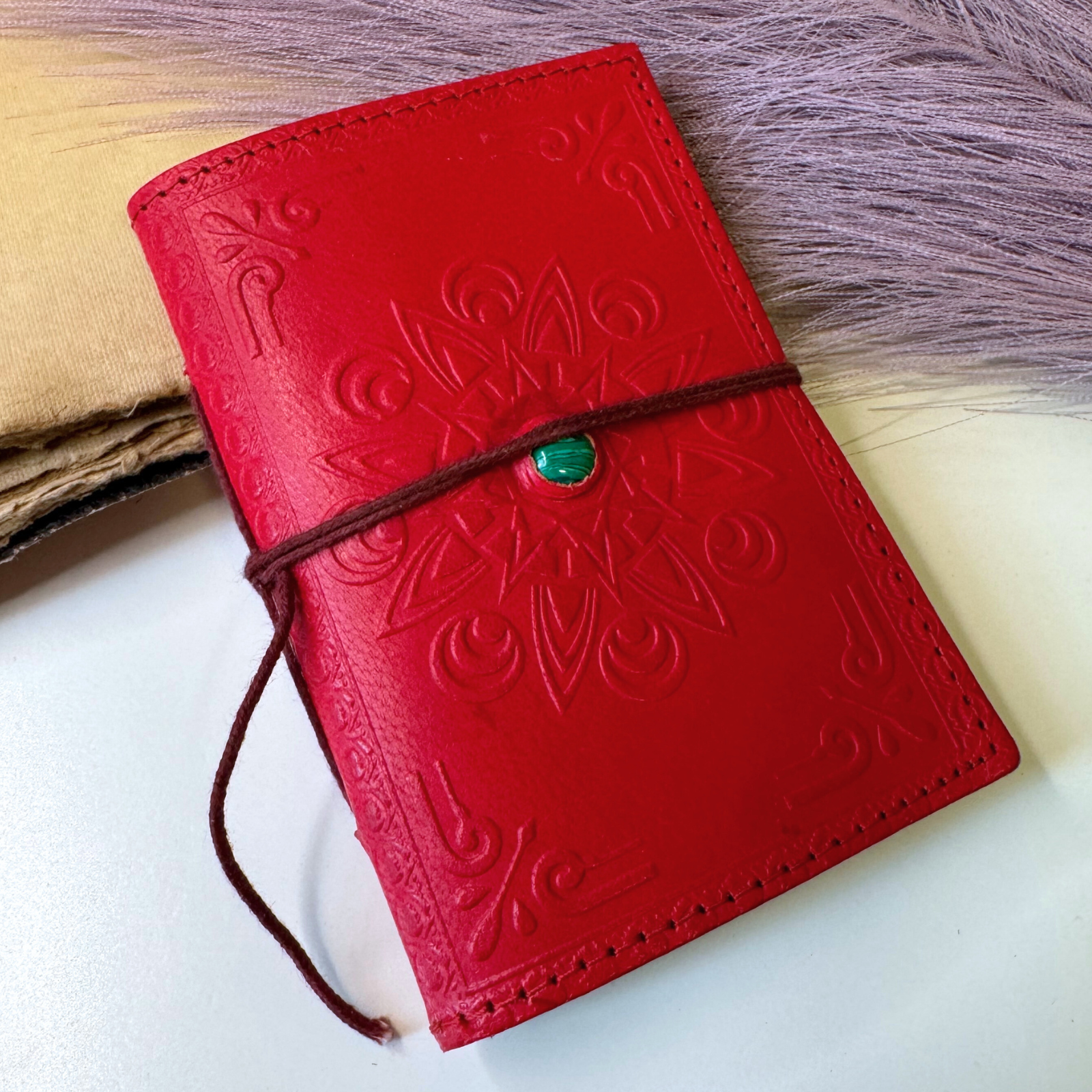 Agenda mica din piele naturala decorata cu piatra - Rosu – lucrata manual, cu grija, pentru momentele care merita pastrate ♥