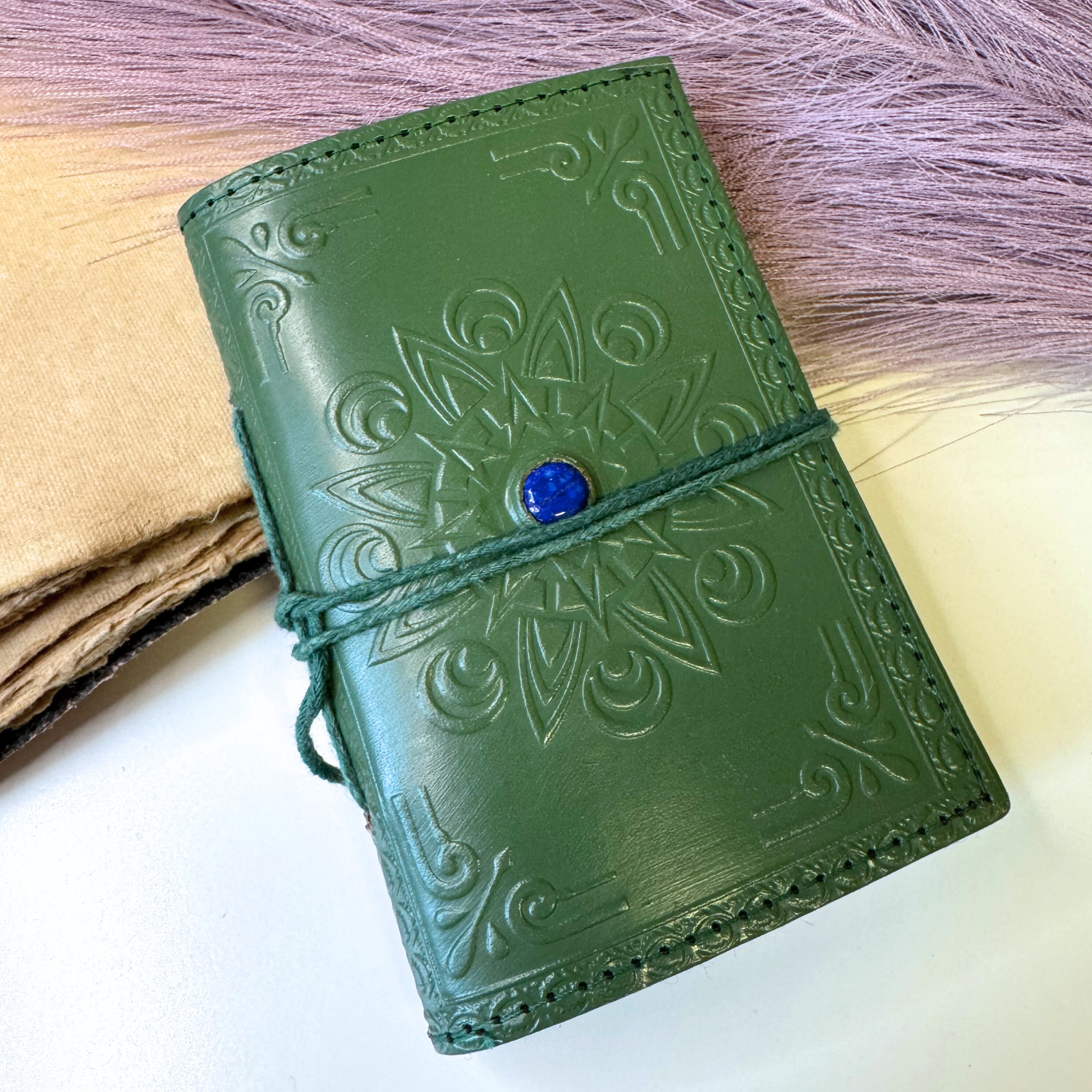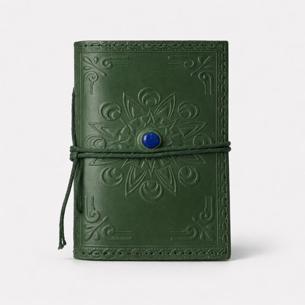 Agenda mica din piele naturala decorata cu piatra - Verde – lucrata manual, cu grija, pentru momentele care merita pastrate ♥