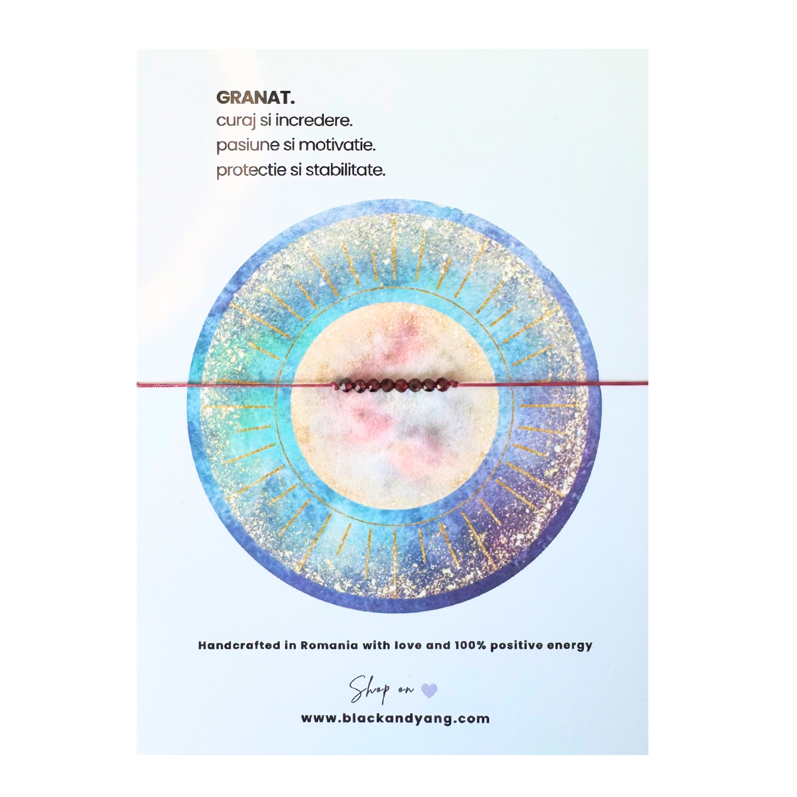 Realizata cu cristale naturale fatetate de 2 / 2.5 mm : granat