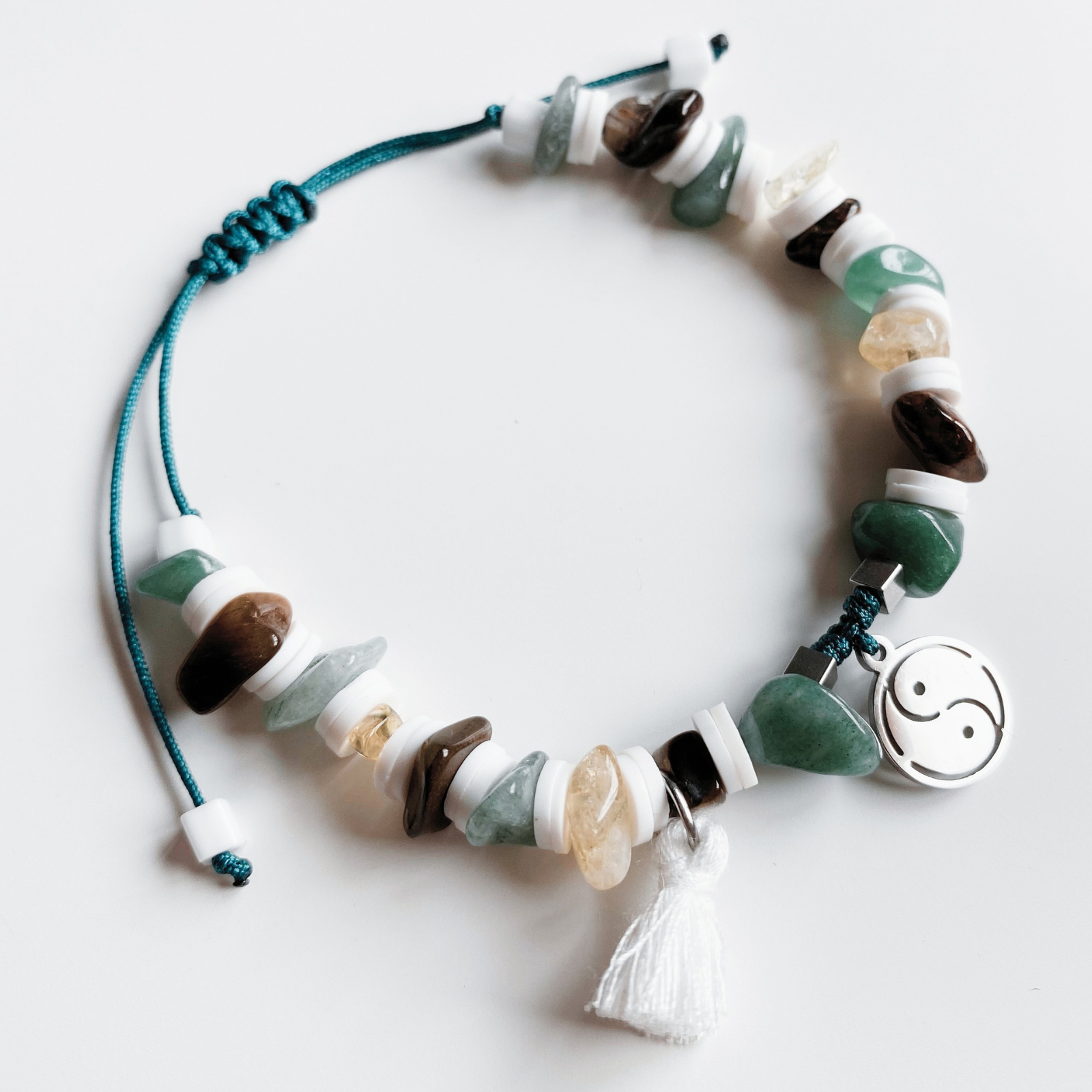 Bratara Feng Shui Yin si Yang cu aventurin, citrin si ochi de tigru - abundenta si prosperitate