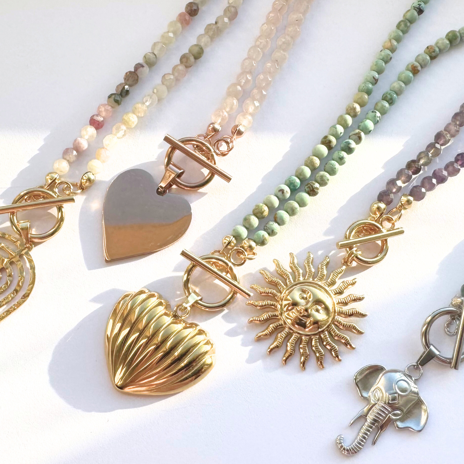 Colier la baza gatului din turcoaz natural cu pandantiv inima si inchizatoare toggle
