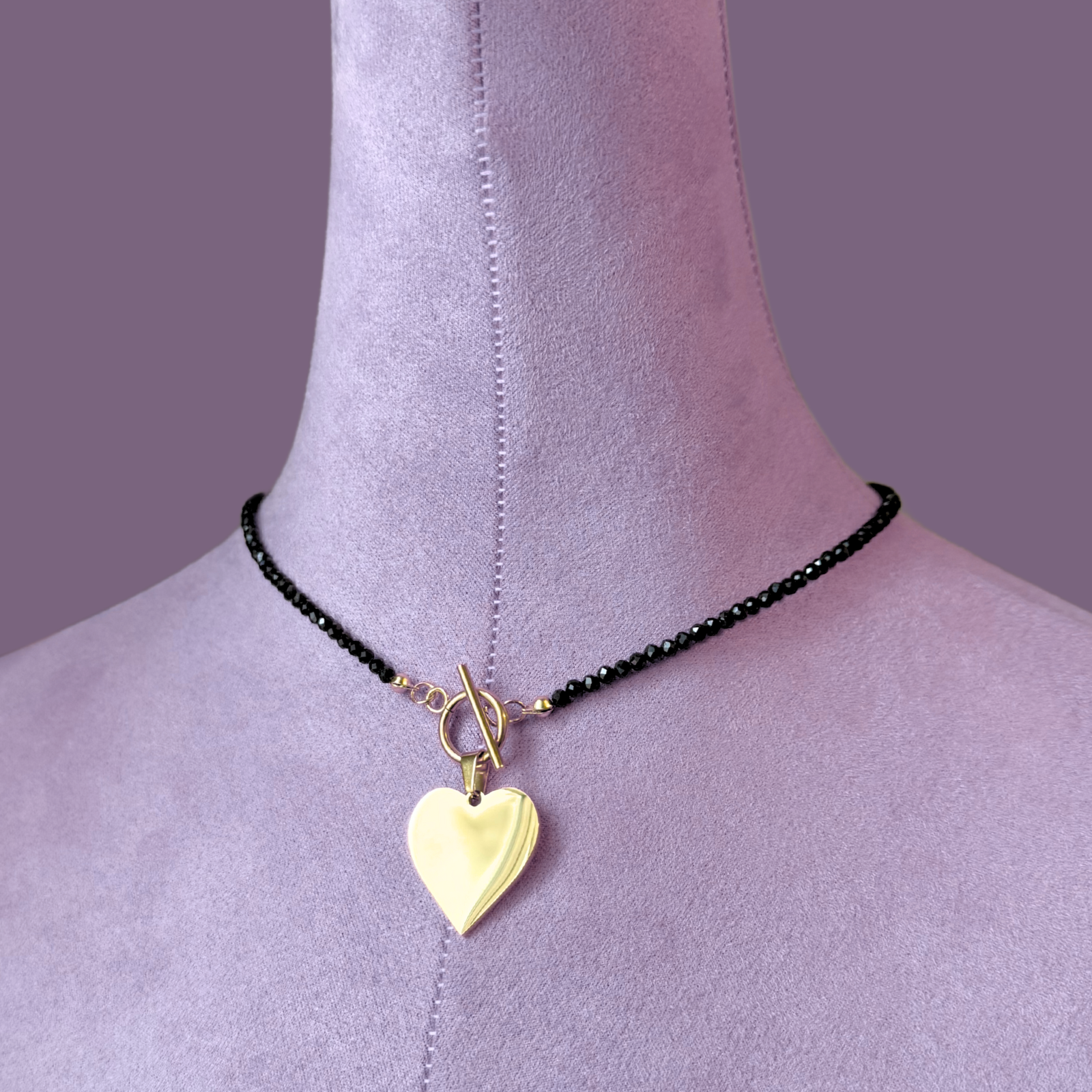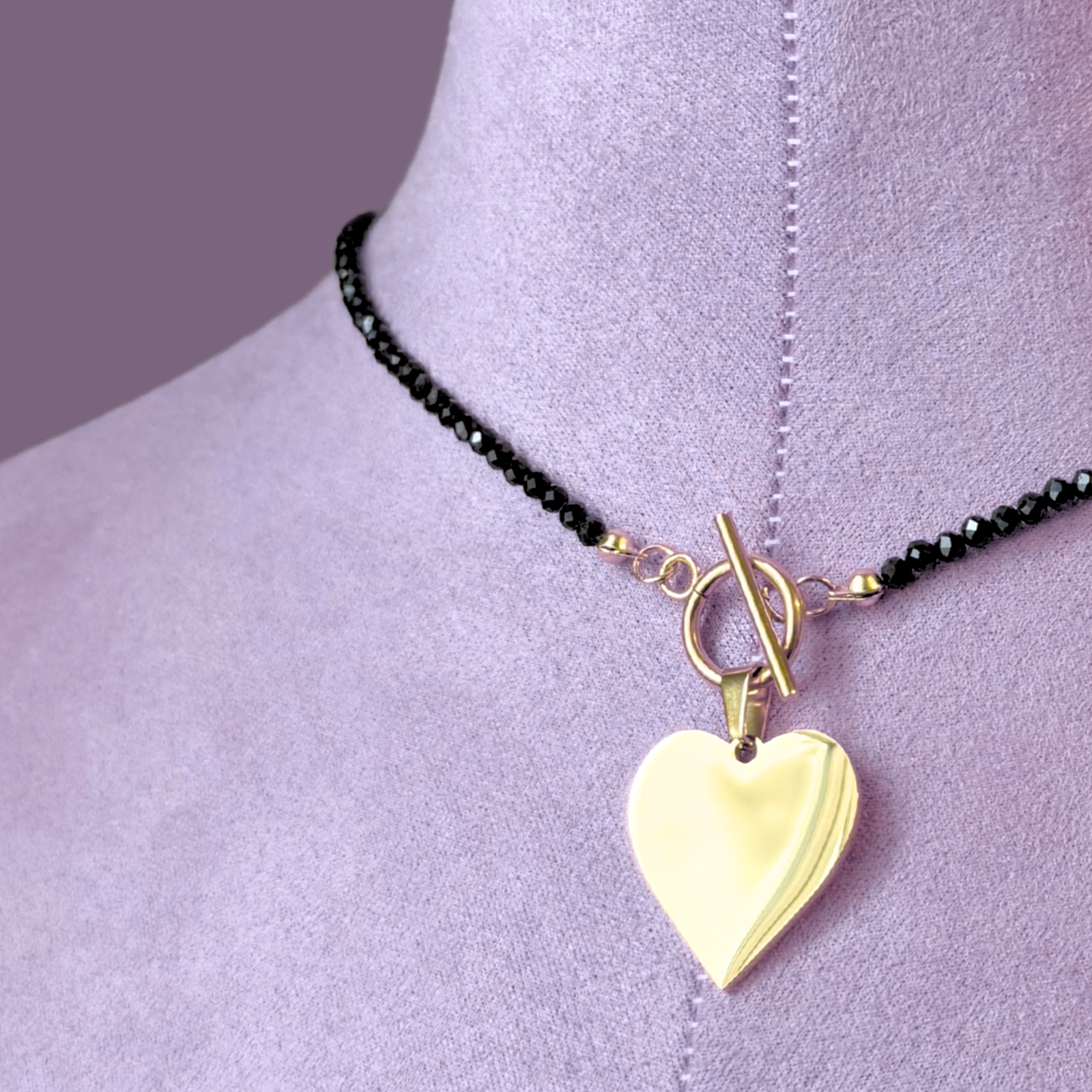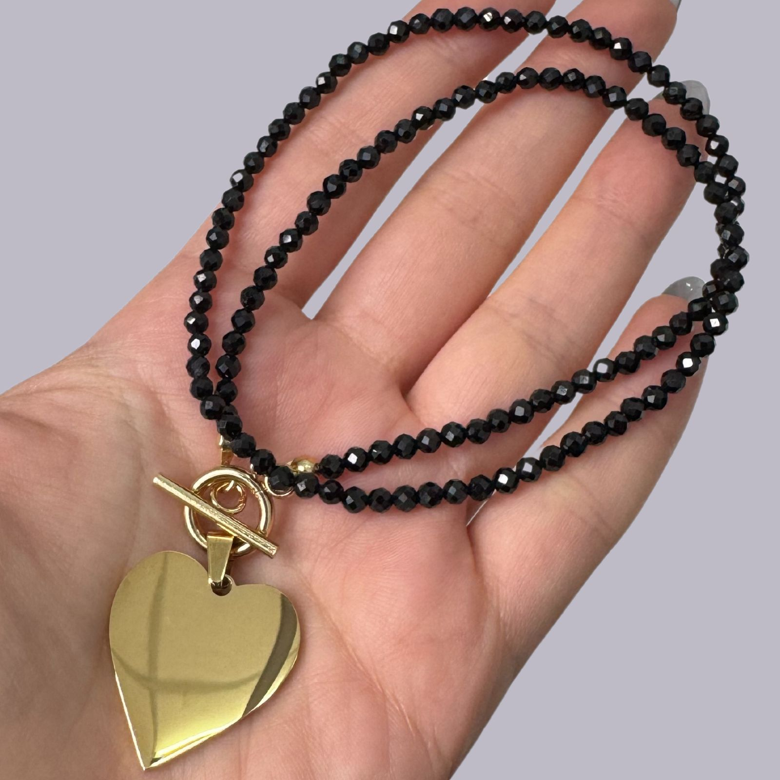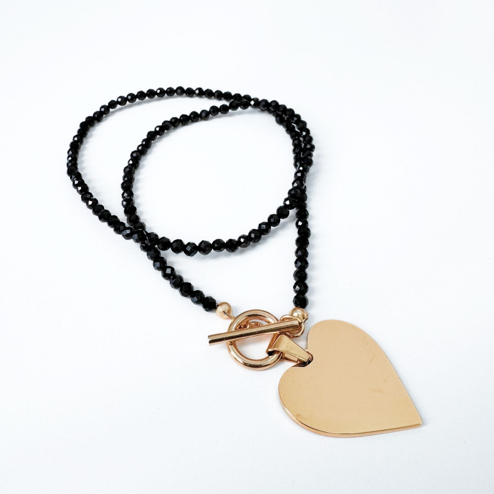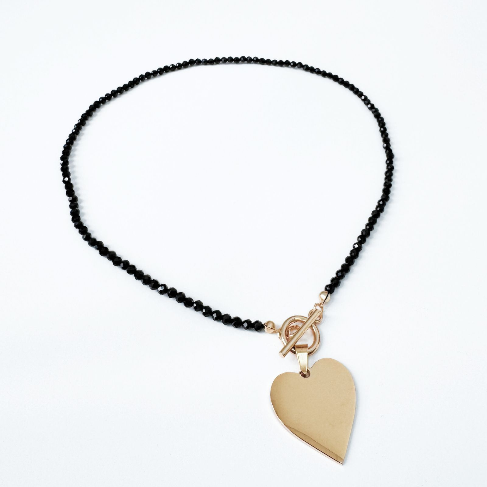 Colier la baza gatului din turmalina neagra cu pandantiv inima